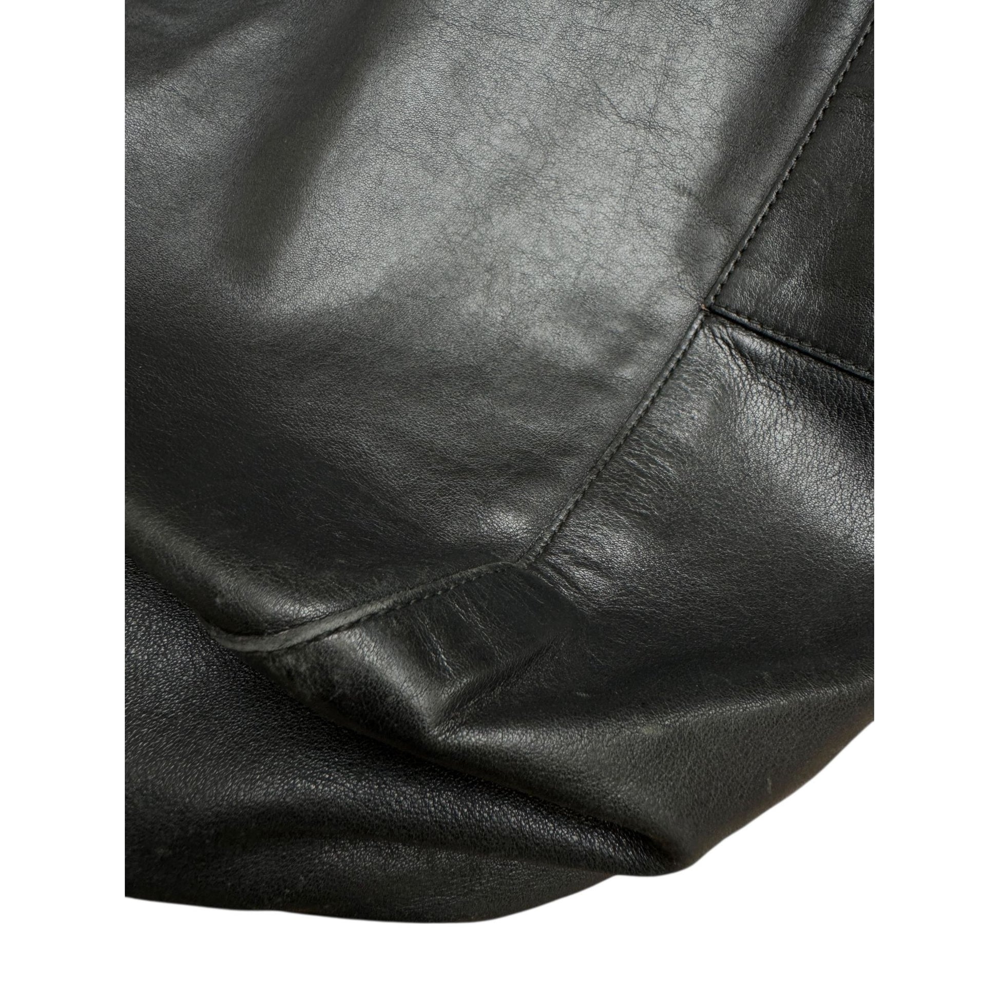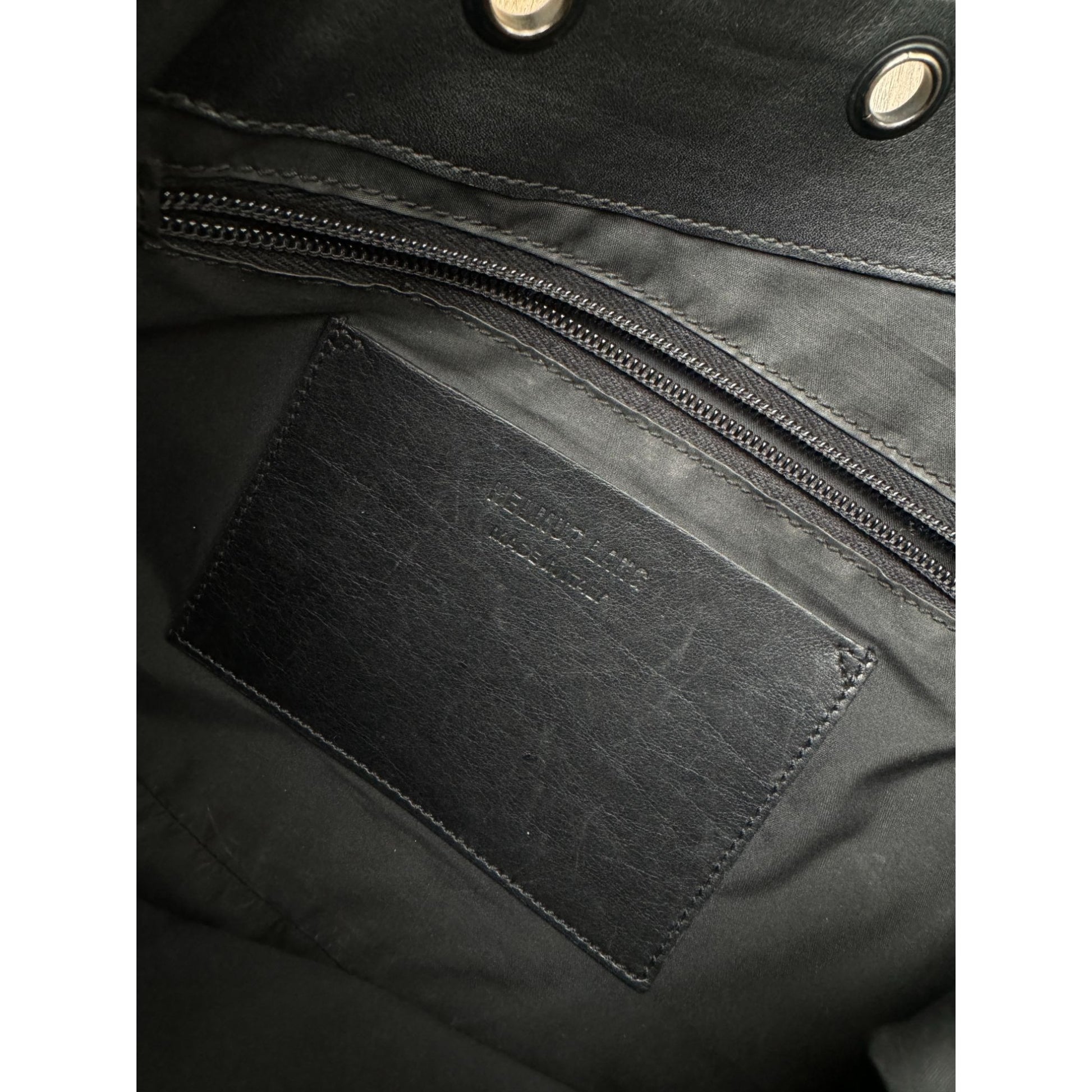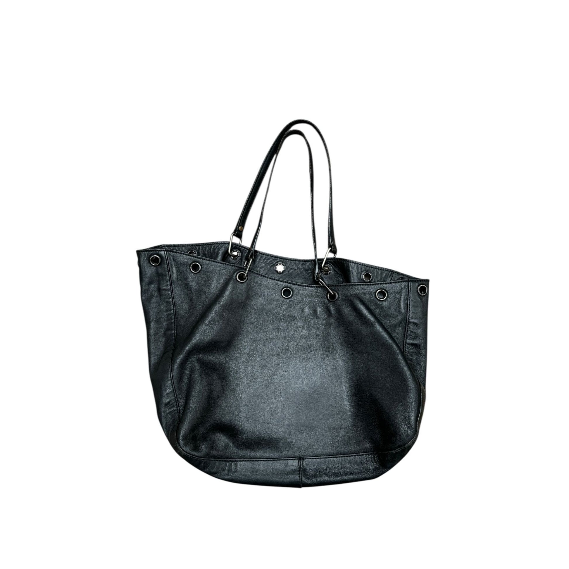 A minimalist vintage handbag from Helmut Lang, reflecting the brand’s industrial elegance and understated sophistication. Crafted in Italy from supple black leather, the bag features the designer’s signature utilitarian approach — clean lines, subtle hardware detailing with eyelets, and a lightly structured silhouette that balances function and refinement.