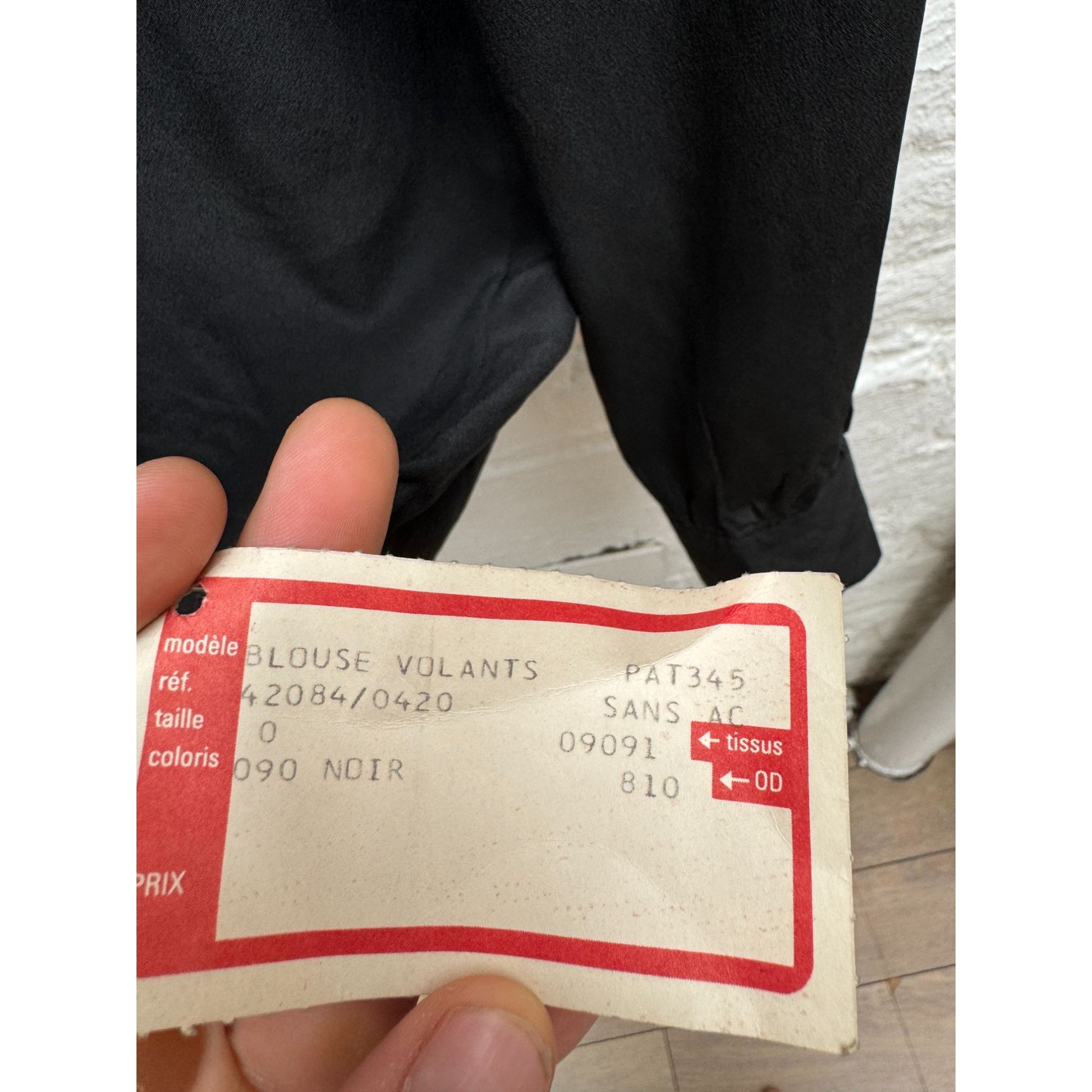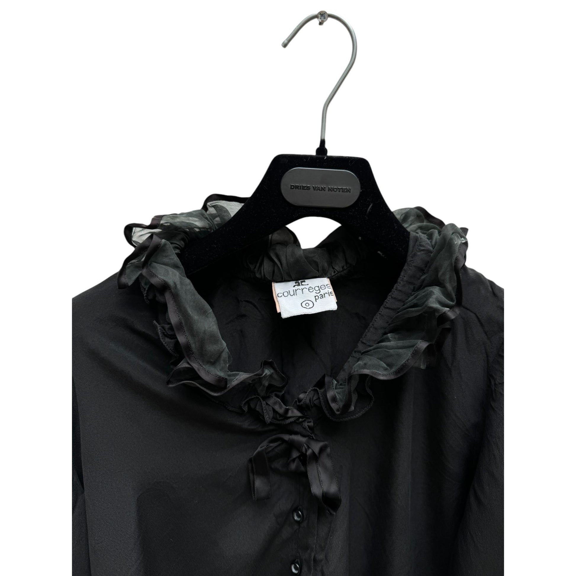 Vintage Black Silk Ruffled Collar Shirt