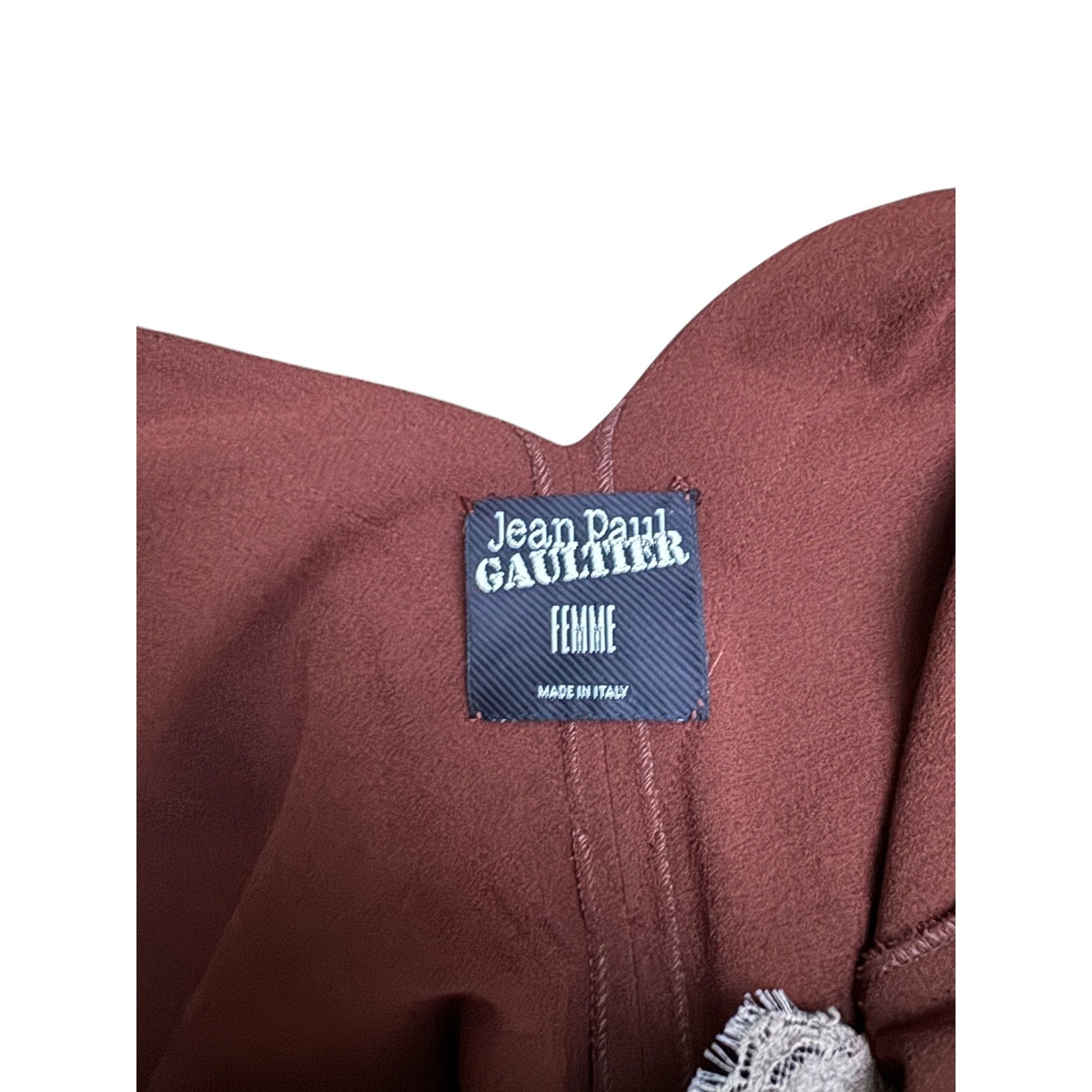 The fabric mix offers both comfort and drape: the wool-blend exterior provides structure, while the viscose-based underdress feels smooth and fluid against the skin. A timeless yet unmistakably Gaultier design, ideal worn alone as a statement piece or styled with tailoring or boots for a sharper look.