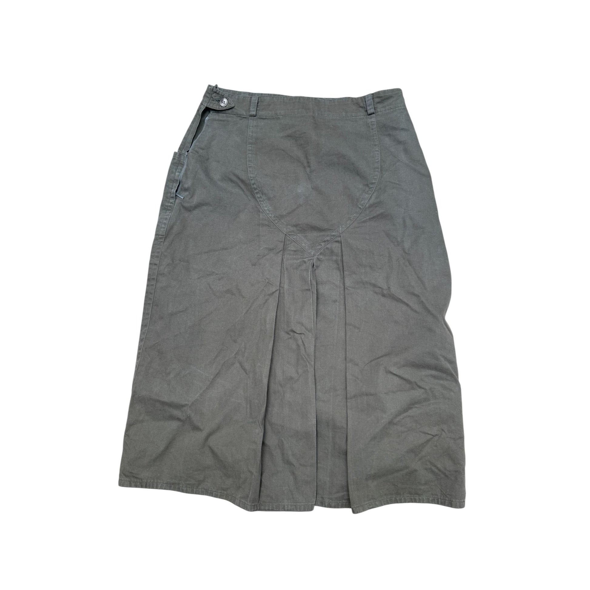 Timeless and minimal with a utilitarian edge, this vintage Jil Sander skirt from the 1980s is cut from sturdy cotton with a structured A-line silhouette. The khaki hue has softened slightly with time, giving it an effortlessly worn-in, authentic feel.