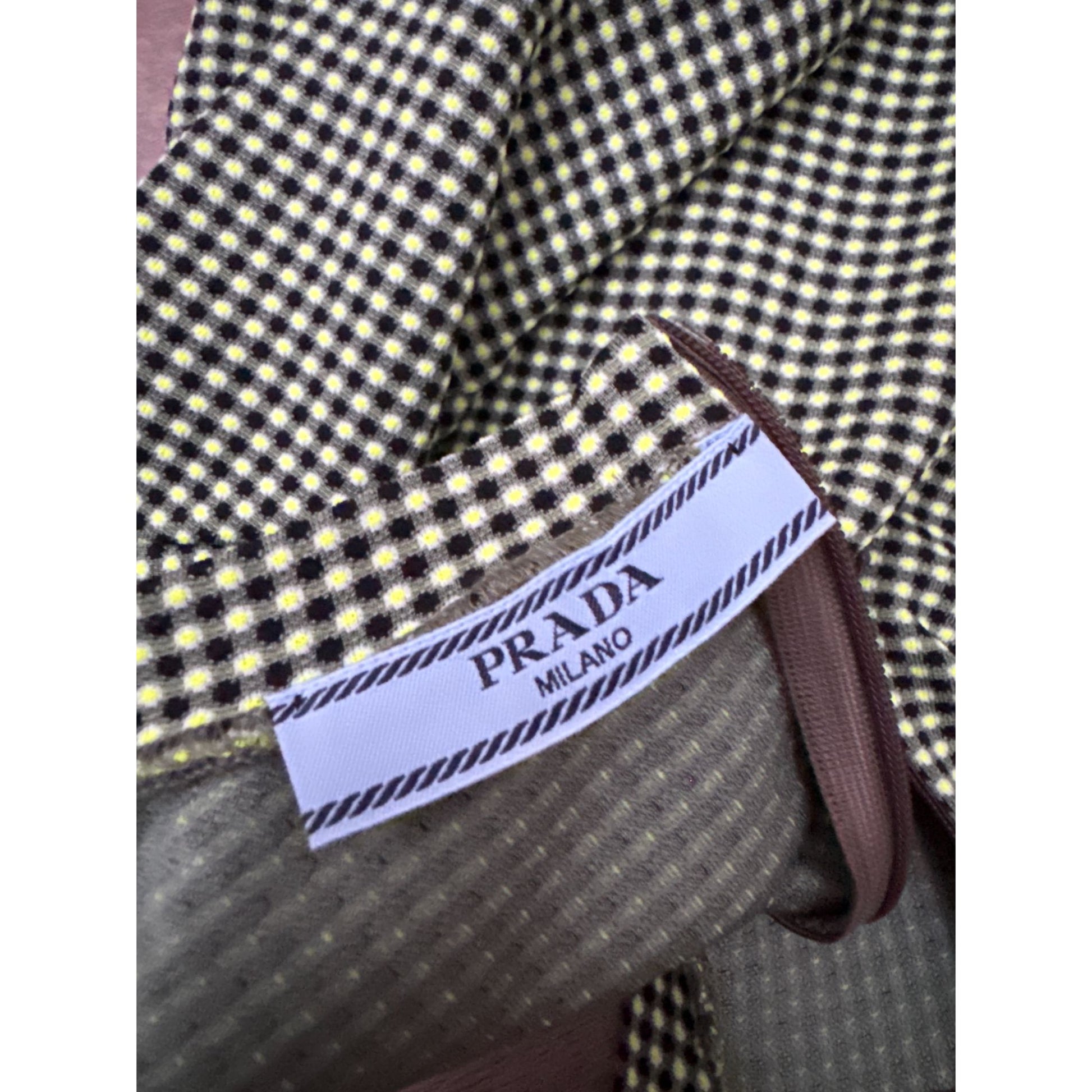 Graphic Prada top with a sleek minimalist silhouette and back zip closure. The “visual effects” dot motif adds a sharp conceptual touch while remaining very wearable—style with simple black trousers or denim to let the print stand out.
